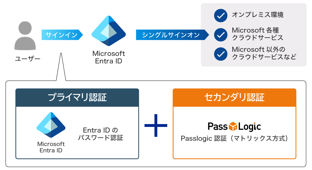 PassLogic Bridge – Microsoft 365用セカンダリ認証(以下、Bridge M365)は、Microsoft Entra ID(以下、Entra ID) の外部認証方法(EAM連携)を利用し、PassLogicをセカンダリ認証としてMicrosoft 365に連携できます。