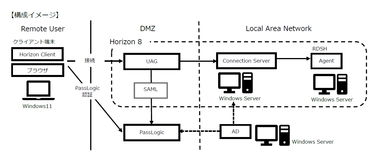 PassLogicを連携させた際の構成について説明します。以下の図は、その連携イメージを示したものです。