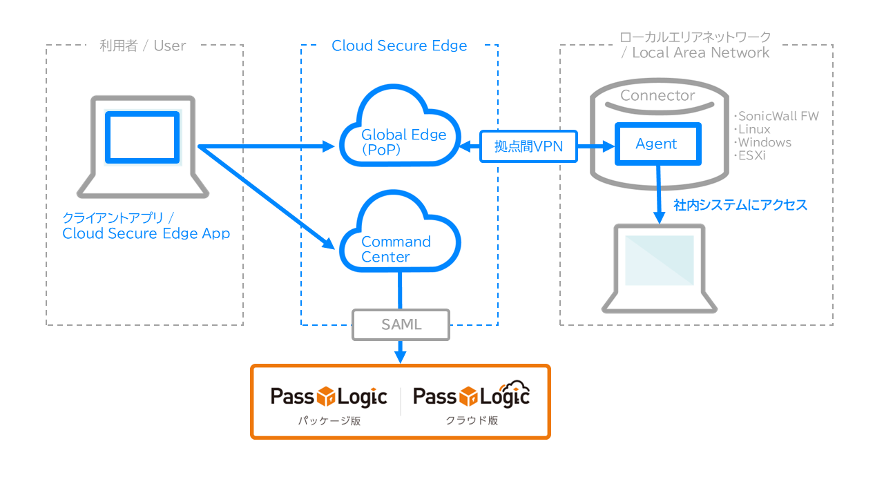 Cloud Secure EdgeとPassLogicの連携構成イメージ