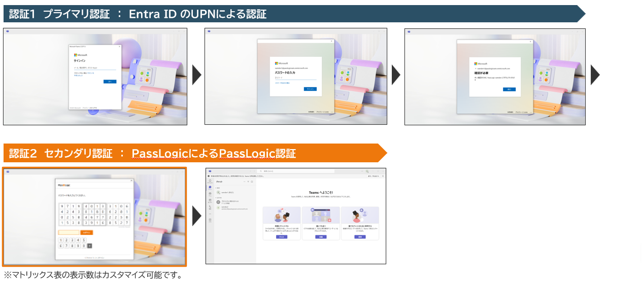Bridge M365は、PassLogic認証(マトリックス方式)を利用することで、完全デバイスレスを可能にします。